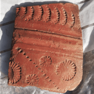 We unearthed these floor tiles, you can see they have been broken, there’s also evidence of burning on the floor. As the discolouration is not widespread we believe it’s from the demolition period. If you’d like to see more of our exhibits please go to the Finds section.